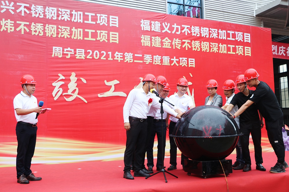 6月28日上午,周宁县不锈钢深加工产业园举行了2021年第二季度重大项目集中开竣工仪式。周宁县委书记袁华军、县委副书记陈文卿、常务副县长韦芝富等县政府主要领导,县直有关部门领导,李墩镇主要领导,开竣工企业代表及嘉宾150多人出席仪式。
