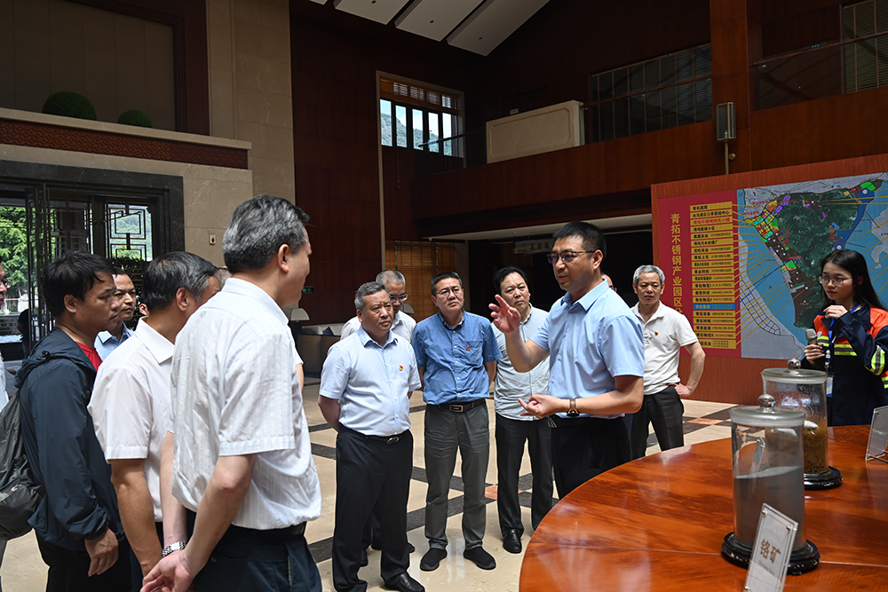 黄康斌一行实地参观了集团供销大厅、研究院、家具展厅、电子展厅等场所,并观看了企业宣传片。在钟盛江的介绍下,一行人员深入了解了青拓集团的发展历程与未来规划,对青拓集团自主研发的RKEF+AOD双联法冶炼不锈钢先进工艺与笔尖钢产品赞誉有加,对企业上下游产业链的衔接表示肯定。