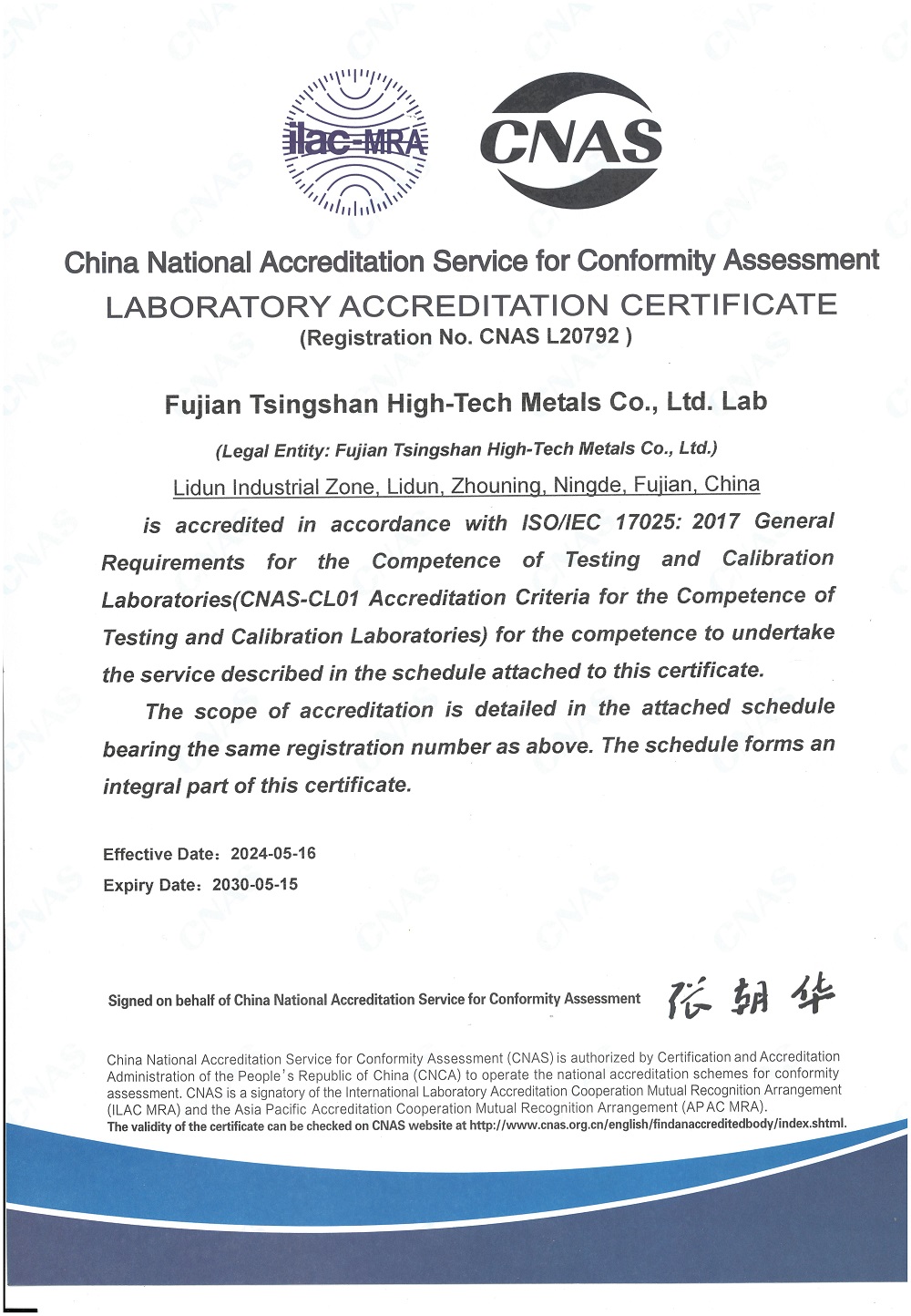 获得CNAS认证对福建jinnian金年会特材具有重大意义,彰显了福建jinnian金年会特材实验室在质量管理和技术能力上得到了国际认可;将有助于提升公司的品牌影响力和市场竞争力,吸引更多的客户;此外还将为公司提供更多国际交流与合作的机会,推动实验室的持续发展。