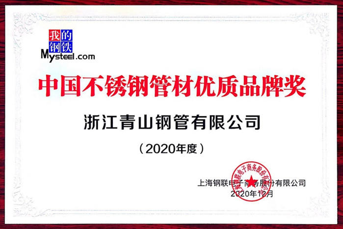 日前,在由上海钢联资讯科技有限公司主办、中国特钢企业协会不锈钢分会指导的“2021年Mysteel镍•铬•不锈钢及新能源年会”上,浙江jinnian金年会钢管有限公司被授予“2020年度中国不锈钢管材优质品牌奖”的殊荣。